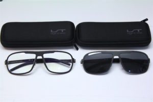 Montage de verres progressifs incolores et solaires sur des montures Lightec de chez Marius Morel.